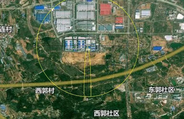 大气环境是以厂区为中心区域,自厂界外延2.5km的矩形区域。环境风险是距厂界5km的区域。厂区周边较近的环境敏感保护目标包括东侧距离230m的山宋村(搬迁尚未完成,现状约5户)、250m的山曹村(搬迁尚未完成,现状约50户);西北侧距离785m的前马连村,东南向约30m处的山宋水库、西向约150m处的前马连(东)水库、西南向约430m处的前马连(前)水库。